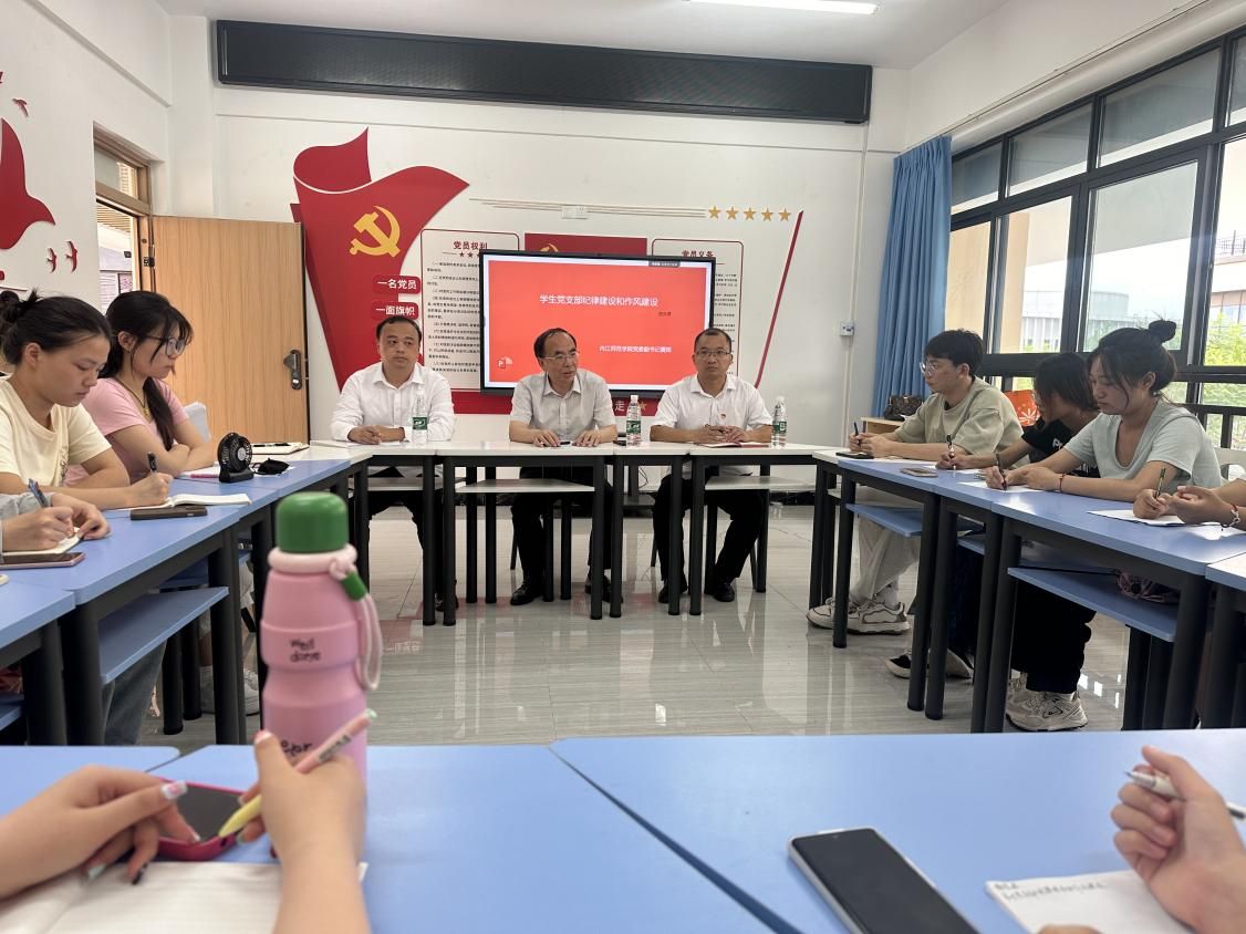 为深入开展党纪学习教育,丰富一站式学生社区思政新内涵,构建思想政治引领新阵地,2024年6月20日下午,k1体育娱乐平台学生第一、第二党支部邀请学校党委副书记黄辉教授于一站式学生社区大洲苑21-2A243党团活动室开展“高校学生党支部纪律建设和作风建设”为主题的微党课。本次微党课由k1体育娱乐平台党委副书记张楠(主持工作)主持,学院副书记李锐、学生党支部书记卓武燕和15名学生党员参与学习。