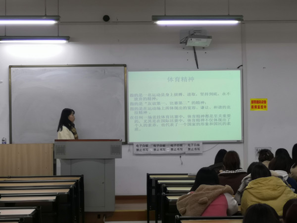 为了提高同学们的体育精神,我班于2021年11月28日晚6点在五教北502开展了以“体育精神”为主题的班会,本次班会由蒲宗兰同学主持,参会人员有2019级1班全体同学。