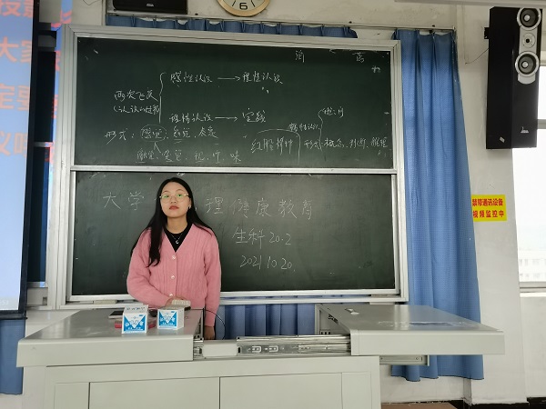 为提高大学生心理素质、促进大学生健康成长、培养全面发展的社会主义建设者与接班人、加强和改进大学生思想政治教育,我院2020级2班于2021年10月20日在五教508集体开展了以“大学生心理健康教育”为主题的班会活动,此次活动由陈加利同学担任主持,参会同学是生科2020级2班全体同学。