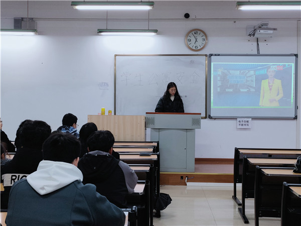 会议开始,主持人向大家播放了一段讲述上海徐汇区商学院宿舍楼602发生火灾造成四人死亡的短视频,视频中分析了造成火灾的原因是同学将热得快通电情况下放置在床上,高温引燃可燃物并扩大成火灾,视频还为我们介绍了公寓用电安全常识,使同学对一些安全隐患与不良生活习惯提高警惕。接着,主持人为大家普及了消防安全知识,如寝室内严禁严禁使用明火或存放明火器具,寝室内严禁使用或存放大功率电器(700W以上)及劣质电器,严禁私拉乱接电线、网线等。紧接着,刘勋提醒同学们注意财产安全,要养成随手关、锁门的习惯,对形迹可疑的陌生人应提高警惕,不留宿外来人员,不要将钥匙借给他人,锁好抽屉、保护好自己的贵重物品不泄露银行卡密码。再接着,主持人介绍了用电安全,在紧急情况下的一些必要措施等,再次提醒同学们离开宿舍要断电。最后,主持人通过举身边发生的例子,向同学们传达了加强人身安全意识。
