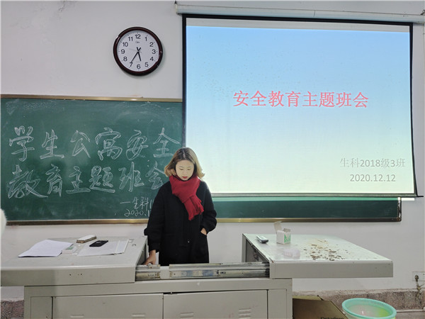 为深入贯彻落实全国教育大会精神和党的十九届系列全会精神,构建学生公寓安全新格局,教育引导广大学生提高安全防范和自我保护意识,浓厚校园安全氛围。生科2018级3班于12月12日17时30分在八教底阶一里开展了本次“安全教育主题班会”。本次班会由肖洋同学主持,2018级3班全体同学参与。
