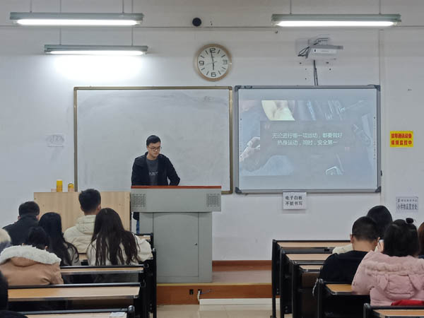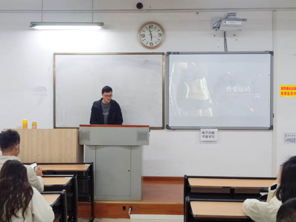 班会初始,主持人向同学们介绍了此次主题班会开展的目的和背景,即在当今大学生身体素质越来越差,运动量极度缺乏的情况下,让同学们认识运动的意义,号召同学们学会热爱运动。首先,主持人询问同学们每天的运动量,做了一个简单的调查,了解同学们的运动情况。接着,主持人问同学们平时生活中真的一点运动时间都没有吗,让同学们反思自己平时的运动时间是否充分。然后,主持人列出了名人的事例,让同学们从这几位名人的事例中学习这些名人对于运动的态度,影响同学们对运动的积极性。之后,主持人分别从身体层面、精神层面以及学习效率等三个方面,向同学们介绍了体育锻炼能给我们带来什么,让同学们意识到运动的重要性,引导同学们养成热爱运动的良好习惯。然后,主持人介绍了体育锻炼的一些种类,如健美类、康复类、极限类等运动,让同学们认识体育运动,并学会选择适合自己的体育运动。最后主持人进行小结,讲述了在进行体育运动的过程中应该注意的事项,强调安全第一,提高同学们的安全意识。