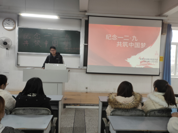 为了提高当代大学的爱国意识,牢记历史使命。我院2018级2班于2020年12月24日10:10在五教106集中召开了以“纪念一二·九,共筑中国梦”为主题的团组织生活会。此次团组织生活会由陈长清同学担任主持人,2018级2班全体同学参与此次团组织生活会。