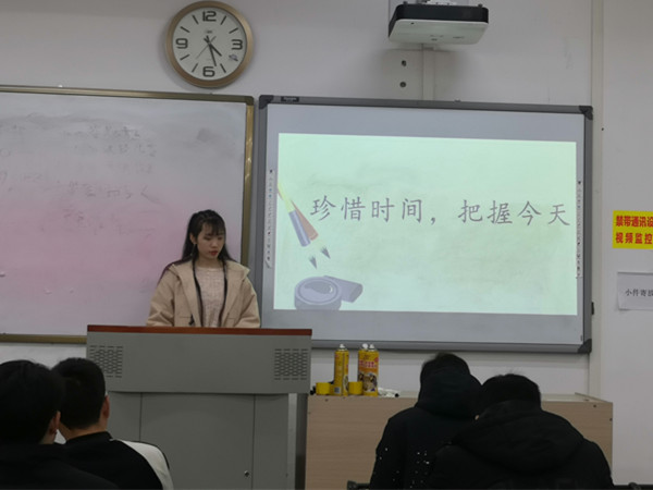 为了让学生认识到珍惜时间的重要性,在平时的生活、学习中能充分利用和合理分配时间。我班于2020年12月6日星期日晚上7点在五教北702开展了以“珍惜时间,把握今天”主题的班会。本次班会由班长魏杰主持,宣传委员吴金莲作纪录,2019级3班同学全体参加。