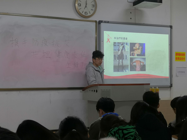 会议开始,班长以问答的形式介绍预防艾滋病的相关知识:1、艾滋病病毒发源来自哪里?2、你了解的艾滋病的危害程度是怎样?3、对艾滋病蔓延的严峻形势你有哪些了解?4、你是怎样看待艾滋病病人的?5.我们普通人应如何与艾滋病病人相处?同学们分组讨论并派几名代表解说答案,氛围异常活跃。各小组同学经过热烈的讨论,每位代表了该小组观点,每一题的回答过后,同学们都能及时进行总结,让大家在答辩中了解预防艾滋病的相关知识。防患于未然。我们要坚持以下几点:1. 坚持洁身自好,避免滥交。2. 严禁吸毒,不与他人共用注射器,去正规医疗机构看病。3. 在医生指导下输血使用血制品。4. 不得共用牙刷,剃须刀,刮脸刀等个人用品。5. 性生活中注意使用合格,正规,有效的安全套。6. 避免与艾滋病患者的血液,尿液等接触,切断其传播途径。艾滋病患者需要保持距离,但更应该关爱他们,他们也是生活在这颗蓝色星球的人,拥有和正常人平等的权力,大家应该用平等的眼光看待他们,社会越关注他们,艾滋病就会越快被解决。