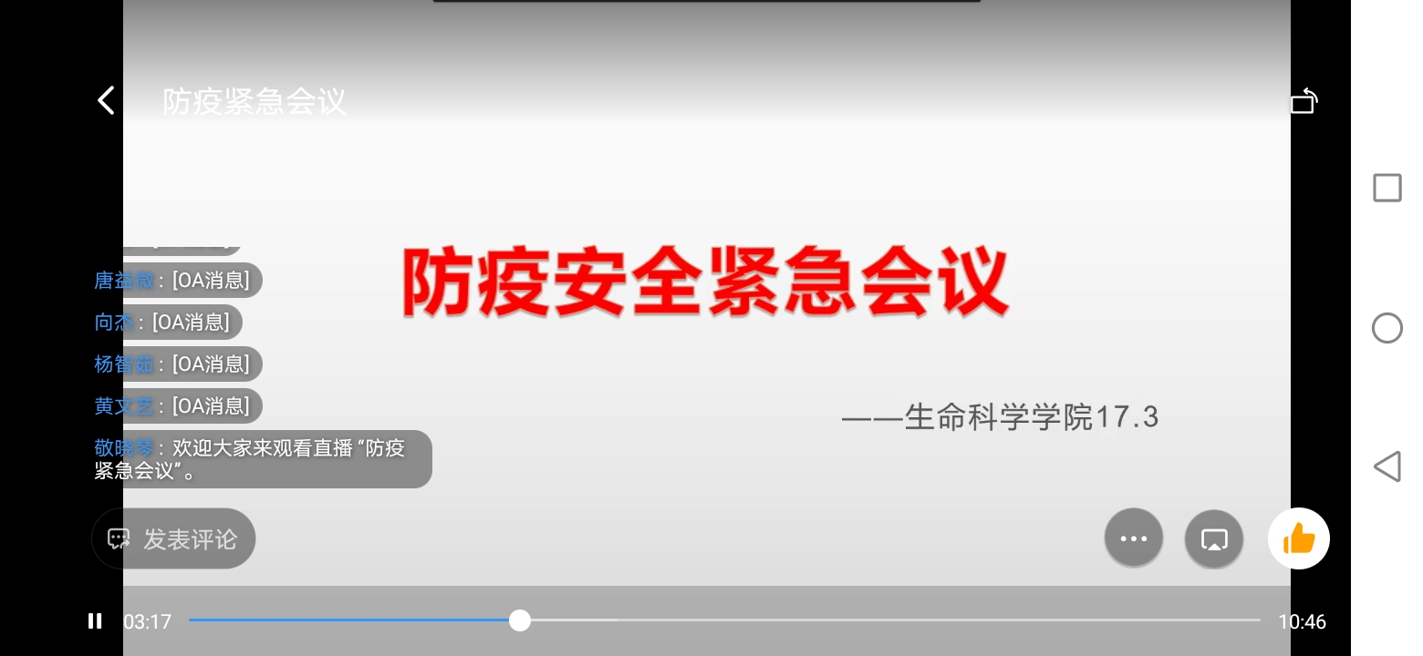 为做好成都本土新增新冠案例的应对工作,同时防止新冠疫情再次大规模爆发,我班于2020年12月8日星期二下午5:30在网络办公软件钉钉召开了“防疫安全紧急会议”。此次会议,由敬晓琴担任主讲人,班主任王均老师以及生科17.3全体同学参加了此次班会。