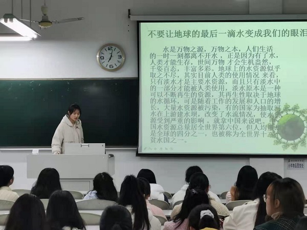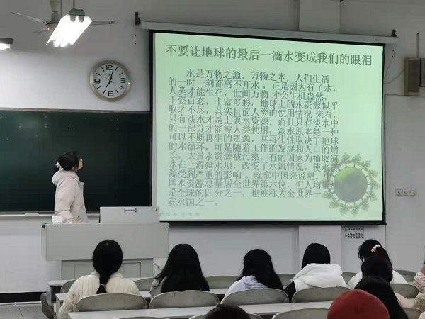此次会议由珍惜水资源、防止噪音、减少白色污染、保护大气层、防止水土流失、土地沙漠化等多方面进行开展。首先主持人为大家梳理了保护环境与发展的关系:“保护生态环境和发展经济从根本上讲是有机统一、相辅相成的,在‘绿水青山就是金山银山’理念指引下,近年来中国生态环境持续改善。”接下来,于淼同学为大家播放了关于环境污染的短视频,在一帧帧画面中,引发了在场所有同学的共鸣,他们饱含热泪,保护环境的信念更加坚定。在此之后,周铭同学带来了自己的环保手工制作,让同学们懂得了如何变废为宝,更增强了学生的环境保护意识。随后,主持人倡导同学们节约资源、减少污染。从点滴做起,节约利用资源。不使用或者少使用一次性饭盒、筷子等消费品,不浪费纸张,不浪费水电,随手关灯关紧水龙头,节约能源,做到资源的可持续利用。