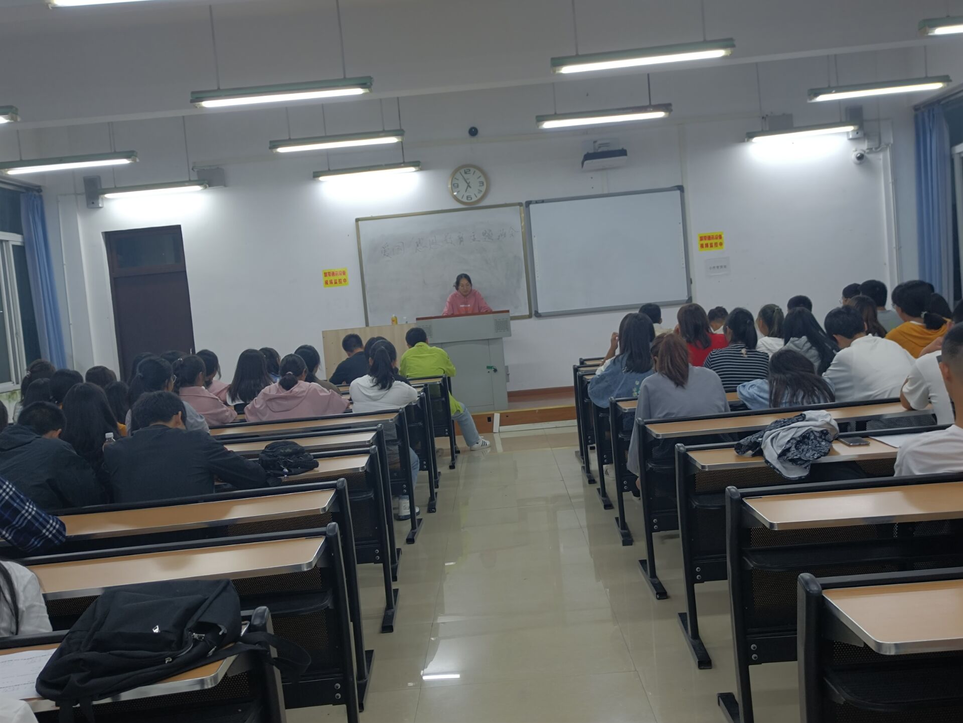 在会议的开始,全体同学奏唱团歌《光荣啊,我的共青团》。在歌唱团歌之后,由学习委员吕应红同学阅读团团致四川学子的一封信。从信中可以看出团团对同学们的殷切希望,接下来,当然也少不了娱乐活动,由320男生寝室朗诵的《相信未来》,主持人向大家讲述了成渝双城经济圈的发展,以及各个地区的重要支撑作用,成渝地区发展对四川的来说是非常重要的事情,之后支持人放出团团说唱节约美德的视频,视频中团团向同学们讲述了一粥一饭来之不易,大家都应当节约粮食,弘扬中华民族的传统美德,接下来,又到了活动时间409女生寝室带来的歌曲《保卫地球》。在这些环节之后,迎来了最激动人心的“知识竞猜”环节。在此轮环节中,同学们认真思考问题,积极回答问题,热情高涨。在所有环节结束之后全体同学起立宣誓。