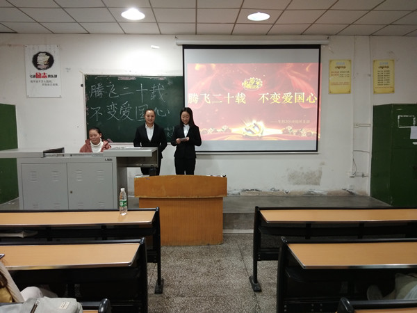 为回顾历史,深刻体会澳门回归的意义,维护祖国和谐统一,增强同学们的爱国主义情怀,生科2018级1班特于2019年12月20日在八教低阶一开展了一场主题为"腾飞二十载,不变爱国心"的团组织生活会,本次团组织生活会由钟君,周怡两位同学主持,生科18级1班全体成员共同参与。