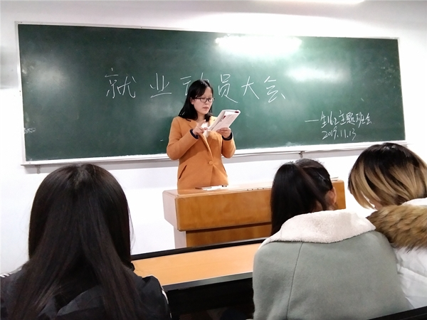 大四上学期已过半,意味着离同学们毕业的时间不远了。由于各个企业招聘都集中在11月前后,加上我校11月24日的大型双选会,为了让同学们有一个很清晰的目标,找到一个适合自己的工作,班主任高度重视。为此,我院2016级2班于2016年11月13日在一教303开展了以“就业动员大会”为主题的班会,此班会由班主任彭慧娟老师主持,2016级2班在校学生共同参与。