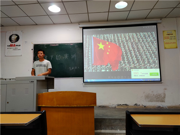 为庆祝中华人民共和国成立70周年,大力唱响“礼赞新中国 奋进新时代”的青春主旋律,k1体育娱乐平台水产养殖专业18级3班的同学于2019年9月8日举行了“国旗下的演讲”活动,本次活动由团支书刘旭主持,宣传委员漆龙做记录以及18级3班全体同学参加。