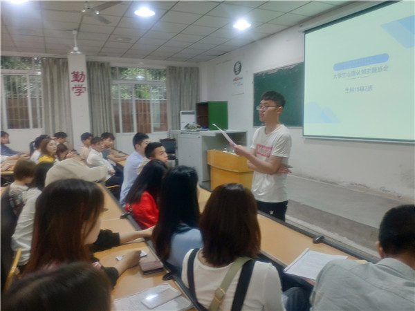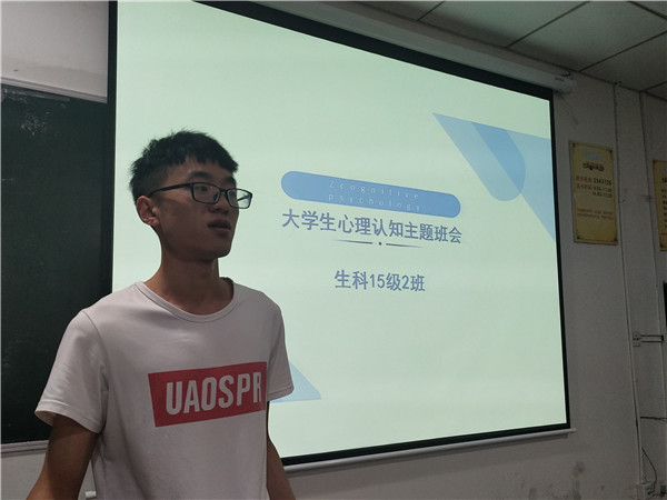 2019年5月18日,本班在第八教学楼低阶一教室召开了以“大学生心理认知”为题的主题班会,本次班会由万志斌同学主持,由班主任李武老师指导。15级2班全体同学参加。