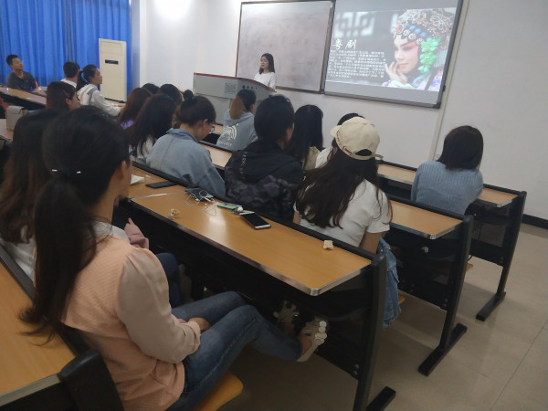 本次班会由120寝室同学承办。班会上,首先闫巧莲同学向我们介绍了中国戏曲主要是由民间歌舞、说唱和滑稽戏三种不同艺术形式综合而成。它起源于原始歌舞,是一种历史悠久的综合舞台艺术样式。经过汉、唐到宋、金才形成比较完整的戏曲艺术,它由文学、音乐、舞蹈、美术、武术、杂技以及表演艺术综合而成,约有三百六十多个种类。它的特点是将众多艺术形式以一种标准聚合在一起,在共同具有的性质中体现其各自的个性。 中国的戏曲与希腊悲剧和喜剧、印度梵剧并称为世界三大古老的戏剧文化,经过长期的发展演变,逐步形成了以"京剧、越剧、黄梅戏、评剧、豫剧"五大戏曲剧种为核心的中华戏曲百花苑。 中国戏曲剧种种类繁多,据不完全统计,中国各民族地区地戏曲剧种约有三百六十多种,传统剧目数以万计。其它比较著名的戏曲种类有:昆曲、坠子戏、粤剧、淮剧、川剧、秦腔、沪剧、晋剧、汉剧、河北梆子、河南越调、河南坠子、湘剧、湖南花鼓戏等。让同学们对戏曲有了更加深刻的认识。