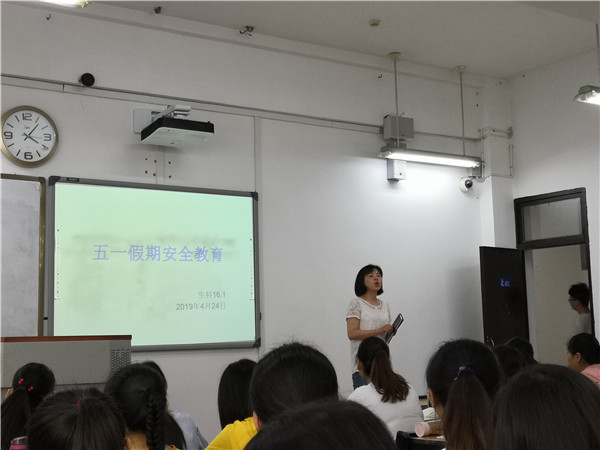 辅导员肖老师重点围绕交通安全、出游安全、饮食卫生安全、财产安全、人身安全、自我保护等安全问题进行强化教育,并希望全体学生要从思想上高度重视安全问题,提高自我保护能力;强调严格执行请销假制度,做好离返校的统计工作;留校学生注意宿舍的居住安全,注意防火防盗,消除各种安全隐患;所有学生假期期间保持手机通信畅通,如遇突发情况,便于学校及家人及时联系。最后肖老师希望同学们能够合理安排好时间和行程,度过一个安全、文明、愉快的假期。