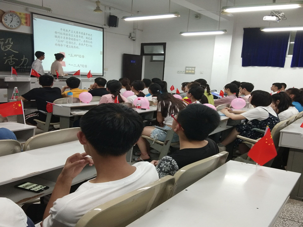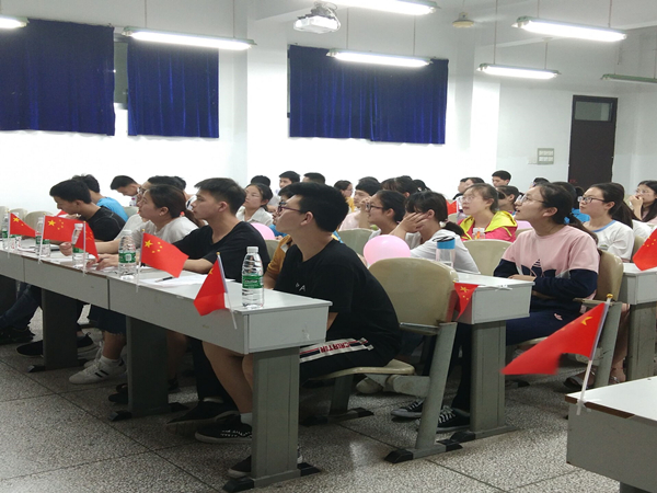 首先主持人对于本次前来观摩的嘉宾表示了欢迎,随后开始本次活动的第一项,介绍共青团的发展历程,伴随着主持人的介绍的小视频,同学们仿佛也进入了那个战火纷飞,却又充满着生机的年代。接着主持人又向同学们介绍了共青团的日常活动。男生寝室也为我们铿锵有力的朗诵了《少年中国说》,这也是他们想为祖国奉献的决心的象征。再观看了有关东莞共青团建设活动视频之后,也有同学们为大家分享了在自己身边所感受到的共青团活动。本次活动的指导思想分为三个模块,“两个维护”、“四个自信”、“四个意识”。唯有竞争才能使人进步,女生寝室带来的小品《竞选》便以幽默风趣的表演为同学们阐述了这一观点。最后便是同学们最为期待又充满紧张刺激的游戏环节开始了,大家都积极的参与其中,看似简单的夹乒乓球活动,却又是对同学们默契和团结的考验。活动的最后,主持人也号召在座的共青团员以及入党积极分子们向革命前辈们学习,为社会作出贡献。