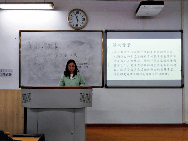 为了让大家充分认识审核评估的重要性和紧迫性,统一思想,提高认识,全力以赴迎接做好各项工作,同时。让同学们对未来发展有一个更好的规划。我班于2018年12月30日晚六点在五教北703教室开展了主题为“青春迎评估,助力新发展”的团组织生活会。此次会议由团支书李芹担任主讲人。班主任王均老师以及三班全体同学参加了此次主题班会。