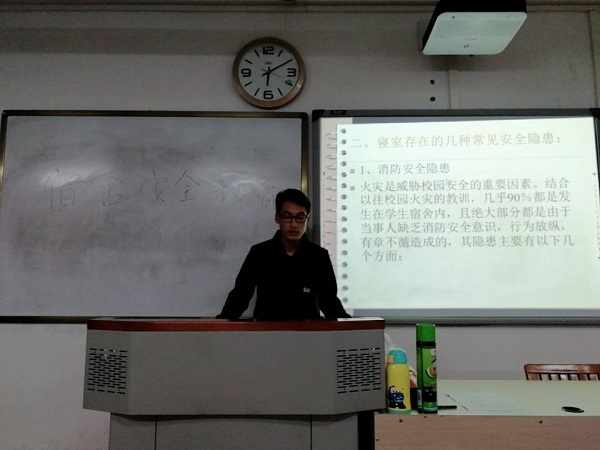 为进一步加强学生自我安全意识、提高自我管理能力,强调学生宿舍安全的重要性,k1体育娱乐平台2016级4班于2018年12月2日19时30分在第五教学楼701教室开展了“宿舍安全教育”的安全教育主题班会,本次班会由男生337寝室组织,罗斌同学担任本次班会主持人,2016级4班全体同学及班主任陶敏老师共同参与。