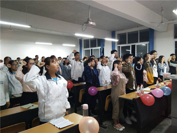 本次活动介绍了共青团的性质和团徽、团员证、团旗的相关知识,并组织同学歌唱团歌,重温入团宣誓词等。大学,对于每个人来说意味着不同的圆梦机会,这是一个青春的多彩舞台,更应用来实现自我价值,通过观看视频《青,听习大大对你说》、《团团说“一干多支”》 ,我班三位同学对此发表了自身见解:身为一名四川的大学生,我们理应关注眼前和身边的事,切实做好共青团对我们的要求,努力铸就民族与国家的辉煌。活动中与共青团相关的知识竞赛让无论是参与的同学还是观看的同学,都收获了很多知识。在游戏“心有灵犀”中,班级的氛围活跃了起来。参与游戏的同学幽默的动作语言让其他同学和老师捧腹大笑。这个游戏,加强了同学们之间的默契和友谊,团结了班级。接着,曹洪源、王琳榕同学分别对A级证书和暑期三下乡进行说明讲解,并提倡同学们多多参与,在实践中提升自我能力。最后,卢豪同学朗诵了“团团致四川高校学子的一封信”。