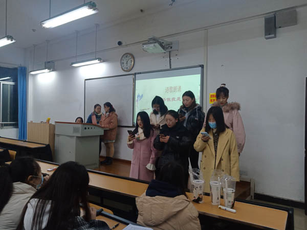 团组织生活会开始时,先由主持人致开场词,并对活动背景和活动目的进行说明,宣布团会开始。主持人带领全班同学奏唱团歌,此次团组织生活会分为 “诗歌朗诵”、“知识竞赛”、“视频观看与感悟分享”、“游戏环节”以及“魔术表演”等模板。在“诗歌朗诵”环节,由女生114寝室带来精彩的诗歌朗诵——《我骄傲我是中国人》,让同学们增强爱国情怀。接着是“知识竞赛”模块,主持人设置了三套题库供同学们选择,三套题库都是有关于“一二·九”运动的相关历史知识,主持人通过这种方式向同学们科普“一二·九”运动知识。然后在“视频观看与感悟分享”模块,主持人带领同学们观看“一二·九”视频,通过视频让同学们了解“一二·九”运动,视频观看结束后,同学们积极分享自己观看视频后的感悟。然后,是“游戏环节”,此次团组织生活会游戏环节设置了两个游戏,这两个游戏分别为“击鼓传花”和“超级大头贴”,同学们积极参与,现场气氛热烈。接着,是“魔术表演”模块,由本班310男生寝室带来三个精彩的魔术表演,调节班级氛围。最后,由班主任胡婷婷老师进行总结。